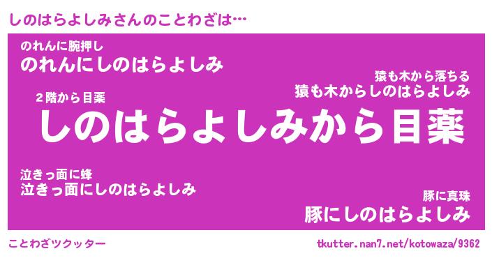 | 胡散臭い通販商品みたいなあだ名 | 『モテモテ間違いなしブレスレット…その名も「しのはらよしみ」』 |