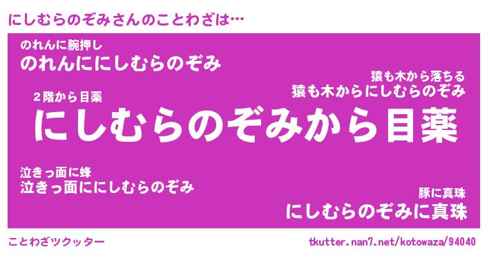 | 肩書あだ名 | 『にしむらのぞみ社長』 |