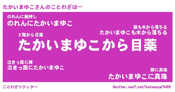 | 恥ずかしいあだ名 | 『プリティーたかいまゆこ』『たかっちょ』 |