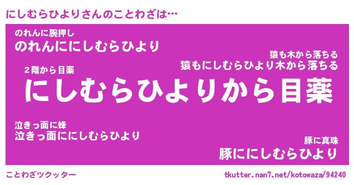| 胡散臭い通販商品みたいなあだ名 | 『億万長者になれるブレスレット…その名も「にしむらひより」』 |