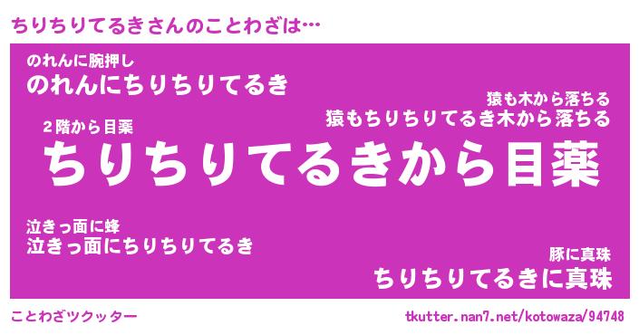 | 胡散臭い通販商品みたいなあだ名 | 『億万長者になれるブレスレット…その名も「ちりちりてるき」』 |