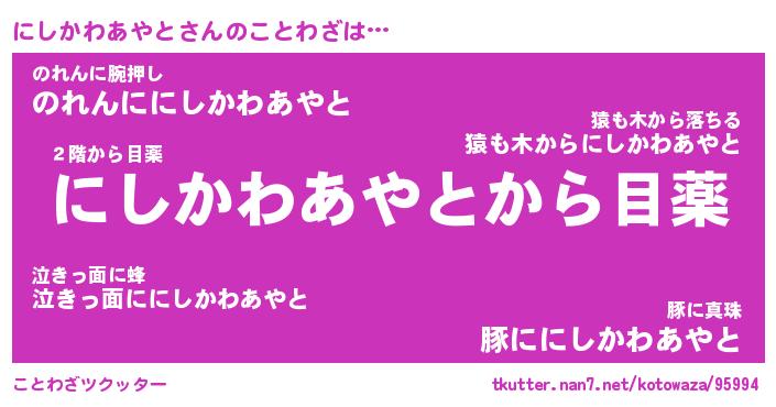 | 胡散臭い通販商品みたいなあだ名 | 『億万長者になれるブレスレット…その名も「にしかわあやと」』 |