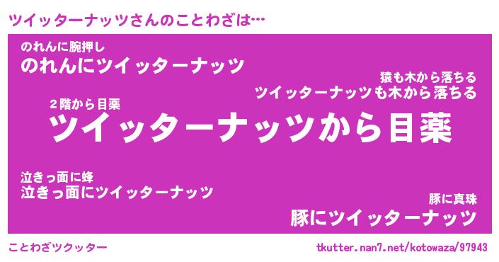 | 胡散臭い通販商品みたいなあだ名 | 『億万長者になれる霊験あらたかなお札…その名も「ツイッターナッツ」』 |