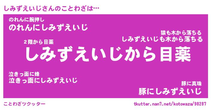 | 胡散臭い通販商品みたいなあだ名 | 『モテモテ間違いなし霊験あらたかなお札…その名も「しみずえいじ」』 |
