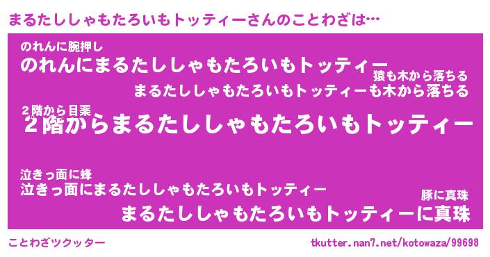 | 男性向けラノベタイトル風あだ名 | 『まるたししゃもたろいもトッティーの憂鬱』 |