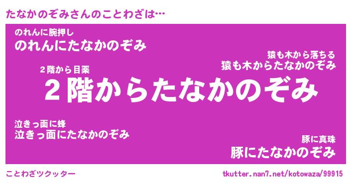 | 伝説のあだ名 | 『不死鳥のスナイパーたなかのぞみ』 |