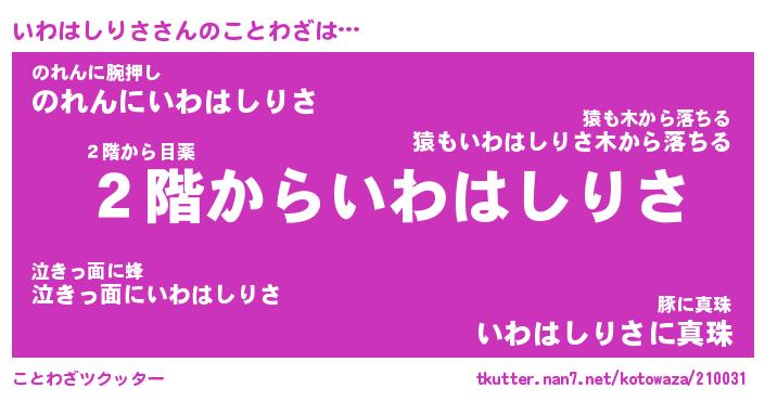 | 胡散臭い通販商品みたいなあだ名 | 『必ず成功するブレスレット…その名も「いわはしりさ」』 |