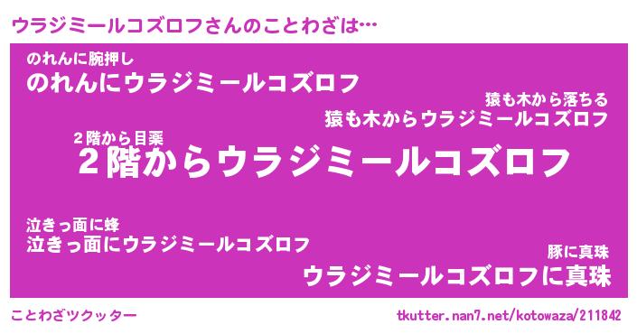 | 胡散臭い通販商品みたいなあだ名 | 『モテモテ間違いなし霊験あらたかなお札…その名も「ウラジミールコズロフ」』 |