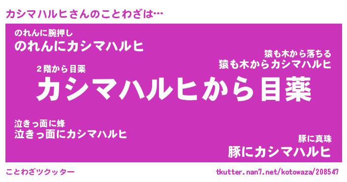 | ヒーロー風カッコイイあだ名 | 『スーパーカシマハルヒ』『魔戒騎士カシ』 |