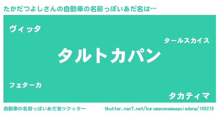| 女子向けラノベタイトル風あだ名 | 『たかだつよしの卵を拾いまして』 |