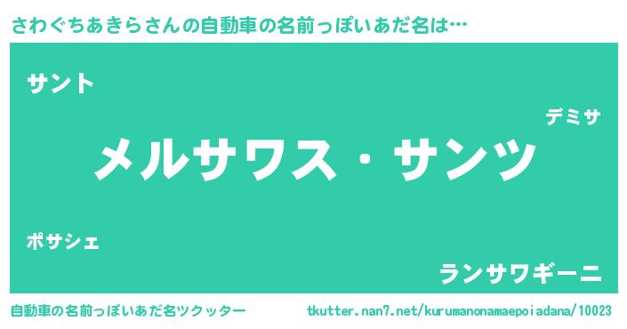 | ポケモン風あだ名 | 『サワセウス』『ヒサワグチアキラ』 |