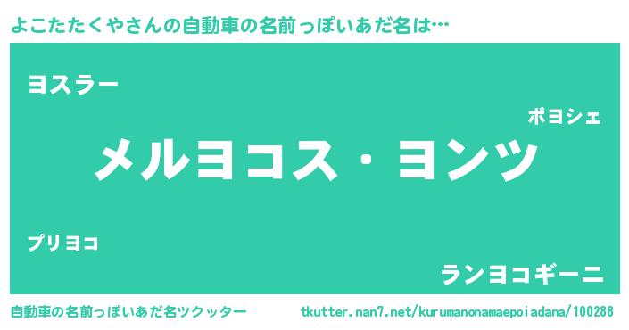 | 男性向けラノベタイトル風あだ名 | 『Re:よこたたくやから始める異世界生活』 |