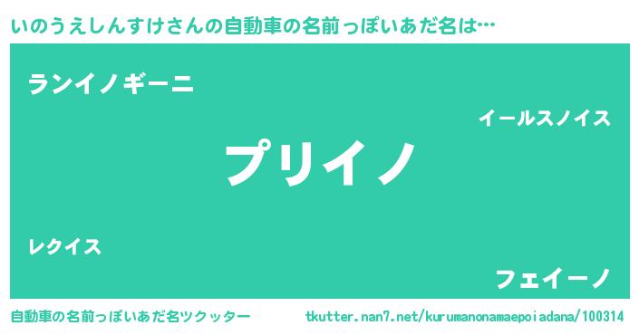| 男性向けラノベタイトル風あだ名 | 『いのうえしんすけの憂鬱』 |