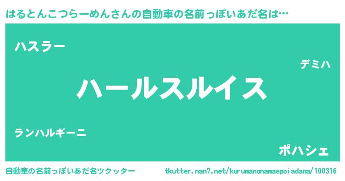 | 欧米人風あだ名 | 『トリンドルはるとんこつらーめん』 |