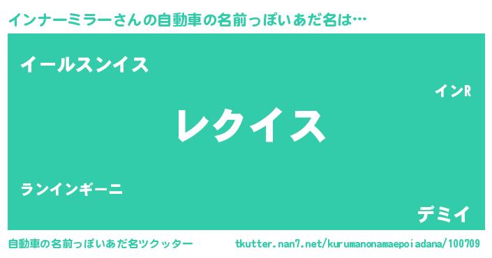 | 女子向けラノベタイトル風あだ名 | 『インナーミラーなんてお断りですっ。』 |