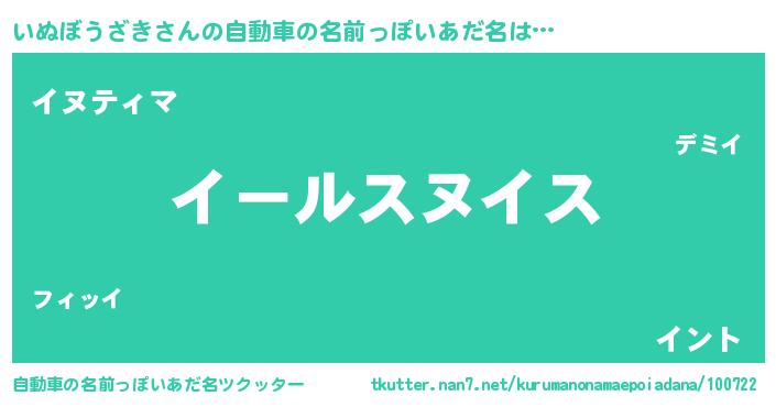 | 女子向けラノベタイトル風あだ名 | 『いぬぼうざきの玉の輿計画!』 |