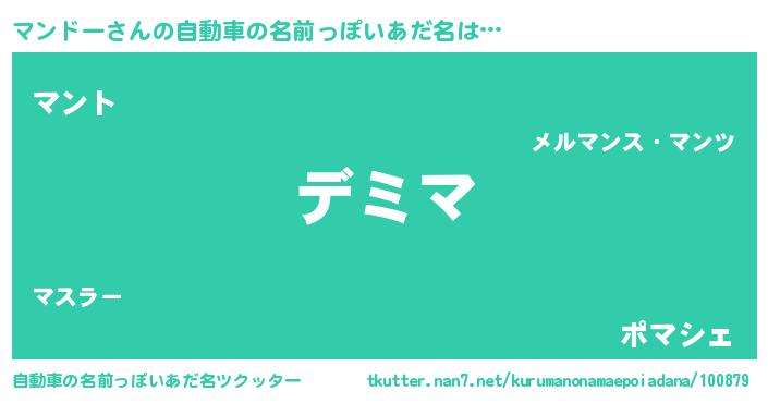 | 男性向けラノベタイトル風あだ名 | 『マンドーという概念が存在しない退屈な世界 』 |