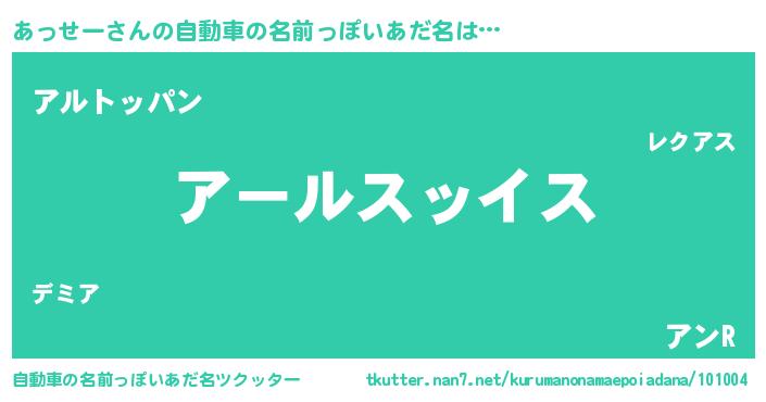 あっせーさんの自動車の名前っぽいあだ名をツクッター!