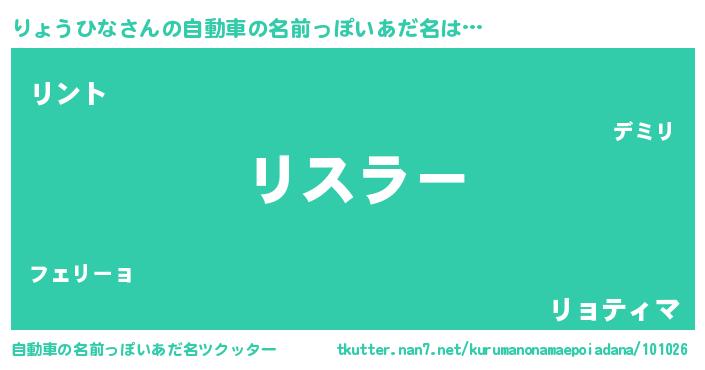 | ファンタジー風あだ名 | 『エターナルリョウヒナー』『リョフェル』 |