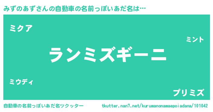 | 男性向けラノベタイトル風あだ名 | 『みずのあずに滅ぼされるだけの簡単なお仕事です』 |