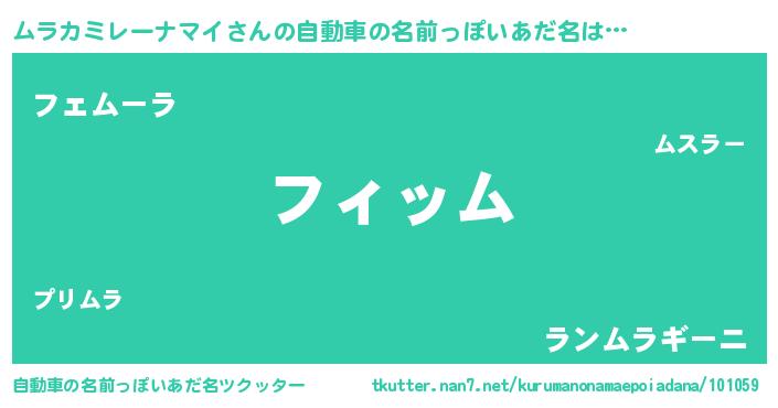 | 男性向けラノベタイトル風あだ名 | 『おまえをオタクにしてやるから、俺をムラカミレーナマイにしてくれ! 』 |