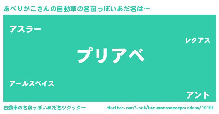 | 男性向けラノベタイトル風あだ名 | 『あべりかこの憂鬱』 |