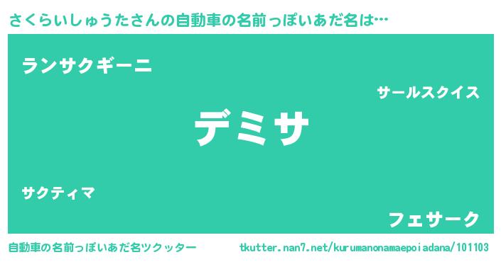 | 男性向けラノベタイトル風あだ名 | 『さくらいしゅうたという概念が存在しない退屈な世界 』 |