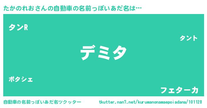 | 男性向けラノベタイトル風あだ名 | 『たかのれおという概念が存在しない退屈な世界 』 |