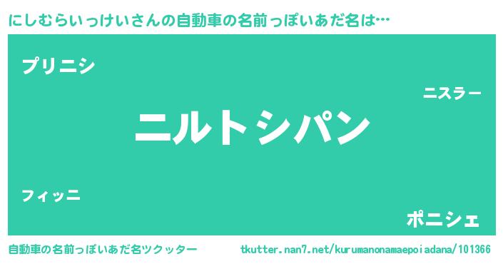 にしむらいっけいさんの自動車の名前っぽいあだ名をツクッター!