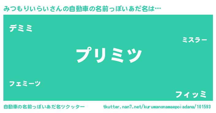 | 男性向けラノベタイトル風あだ名 | 『みつもりいらいの憂鬱』 |