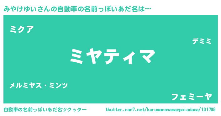 | ファンタジー風あだ名 | 『ミヤフェル』『エターナルミヤケユイー』 |