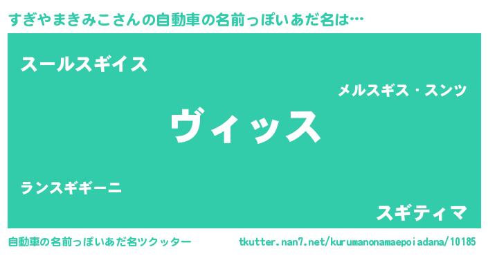 すぎやまきみこさんの自動車の名前っぽいあだ名は… 『ヴィッス』『スールスギイス』『スギティマ』 ツクッター #自動車の名前っぽいあだ名ツクッター http://tkutter.nan7.net/kurumanonamaepoiadana/10185/