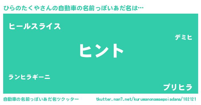 | 胡散臭い通販商品みたいなあだ名 | 『伝統あるサプリメント…その名も「ひらのたくや」』 |