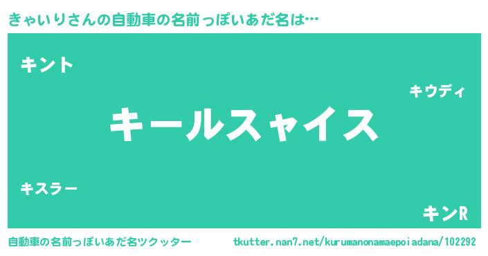| 女子向けラノベタイトル風あだ名 | 『きゃいりの玉の輿計画!』 |