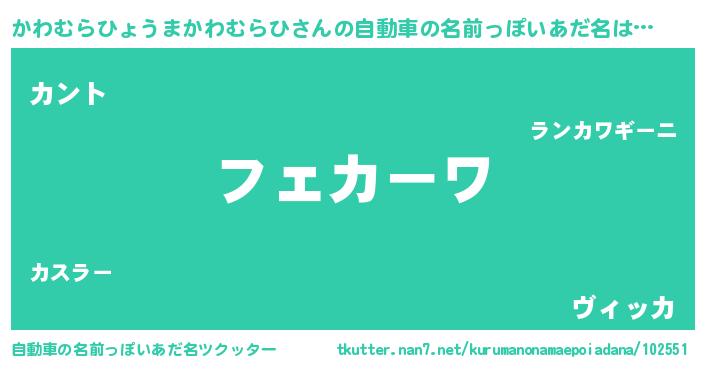 | 意味不明あだ名 | 『とにかく怪しいかわむらひょうまかわむらひ』 |
