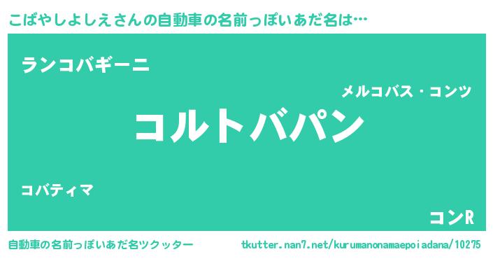 | 意味不明あだ名 | 『とにかく怪しいこばやしよしえ』 |