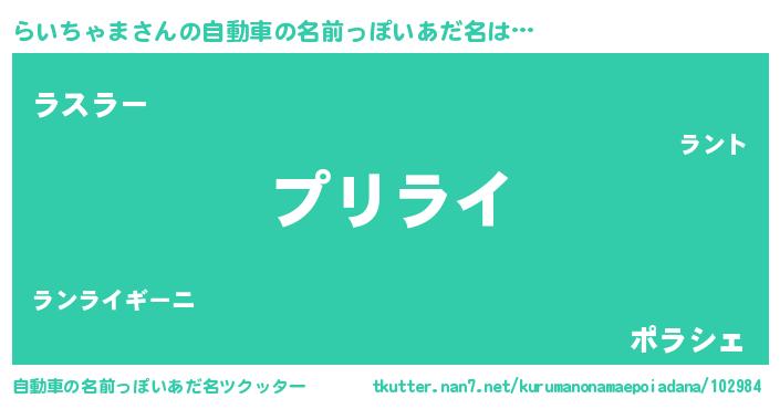 | 男性向けラノベタイトル風あだ名 | 『らいちゃまの憂鬱』 |