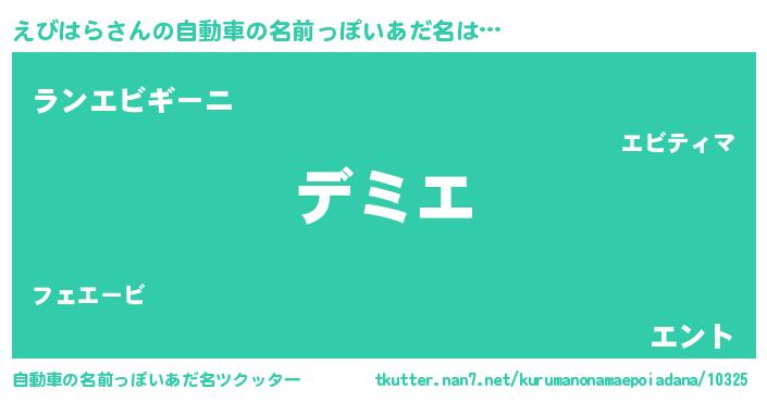 | 胡散臭い通販商品みたいなあだ名 | 『絶対に幸福をもたらす水素水…その名も「えびはら」』 |