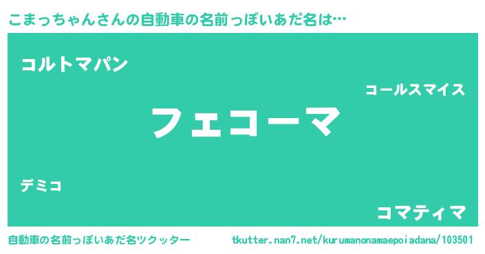 | 胡散臭い通販商品みたいなあだ名 | 『信頼と実績のサプリメント…その名も「こまっちゃん」』 |