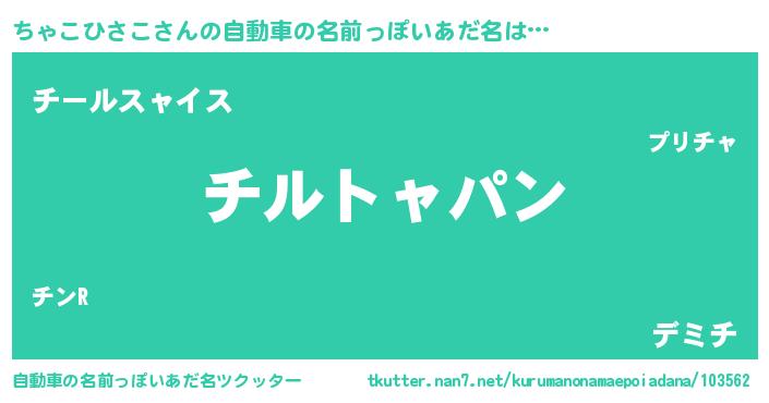 | 女子向けラノベタイトル風あだ名 | 『ちゃこひさこの卵を拾いまして』 |