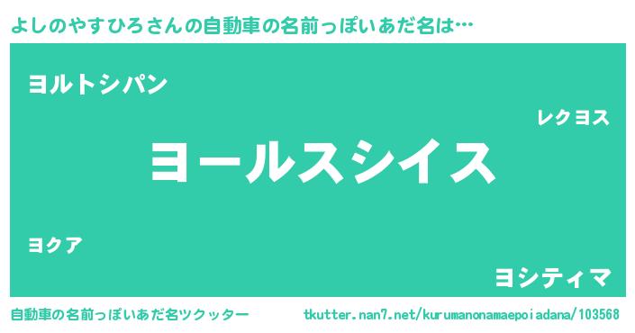 | 男性向けラノベタイトル風あだ名 | 『転生したらよしのやすひろだった件』 |