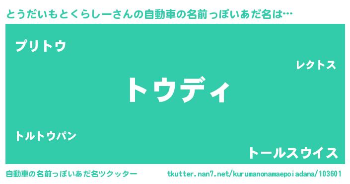 | 意味不明あだ名 | 『住所不定無職とうだいもとくらしー(53歳)』 |