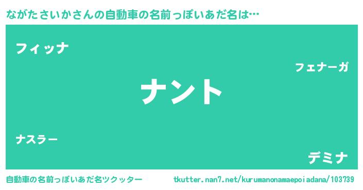 | 男性向けラノベタイトル風あだ名 | 『ながたさいかの嫁は女の子じゃないと思った?』 |