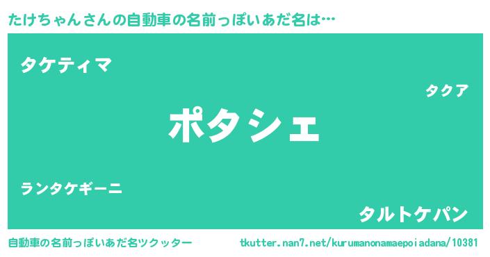 | 男性向けラノベタイトル風あだ名 | 『この素晴らしい世界にたけちゃんを!』 |