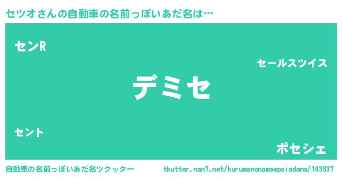| 女子向けラノベタイトル風あだ名 | 『異世界で失敗しない100のセツオ』 |
