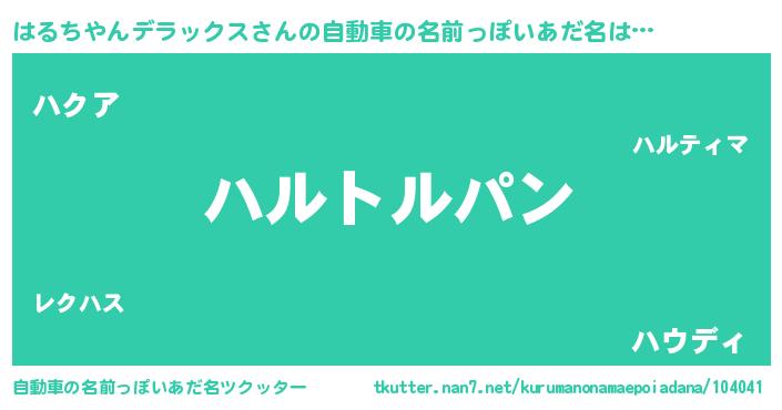 | 男性向けラノベタイトル風あだ名 | 『ダンジョンにはるちやんデラックスを求めるのは間違っているだろうか』 |