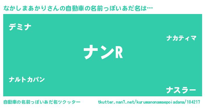 | 男性向けラノベタイトル風あだ名 | 『ノーゲーム・ノーナカシマアカリ』 |