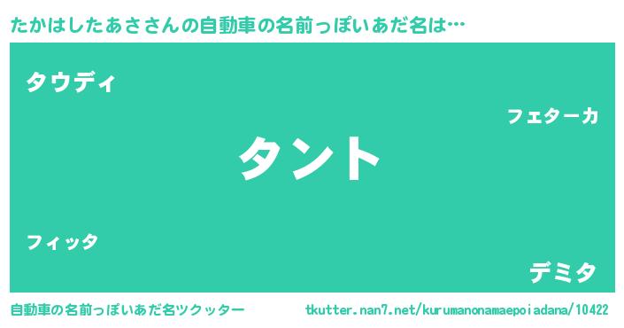 | 女子向けラノベタイトル風あだ名 | 『たかはしたあさの卵を拾いまして』 |