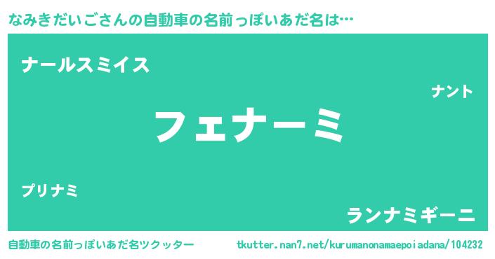 | 欧米人風あだ名 | 『なみきだいご・ステッグマイヤー』 |