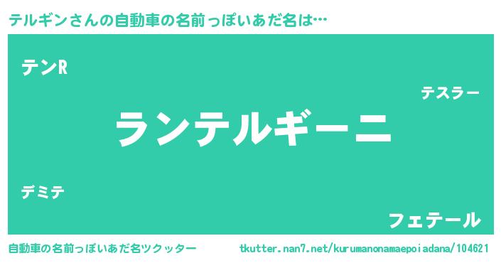 | 男性向けラノベタイトル風あだ名 | 『テルギンに滅ぼされるだけの簡単なお仕事です』 |